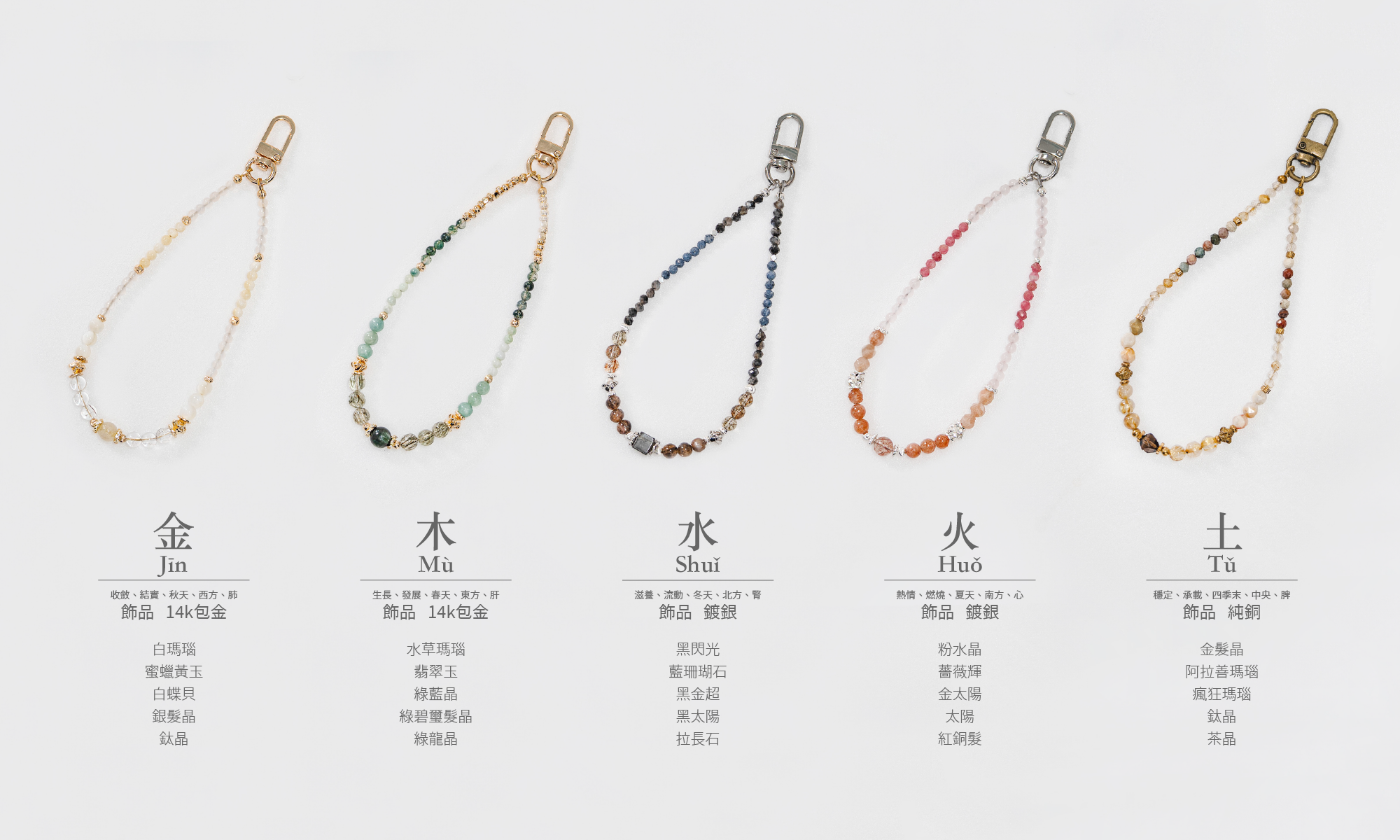 白瑪瑙/蜜蠟黃玉/白蝶貝/銀髮晶/鈦晶