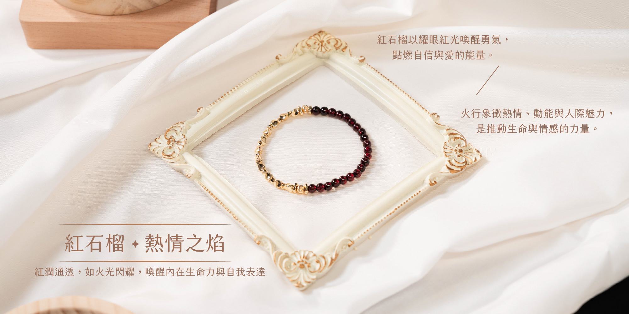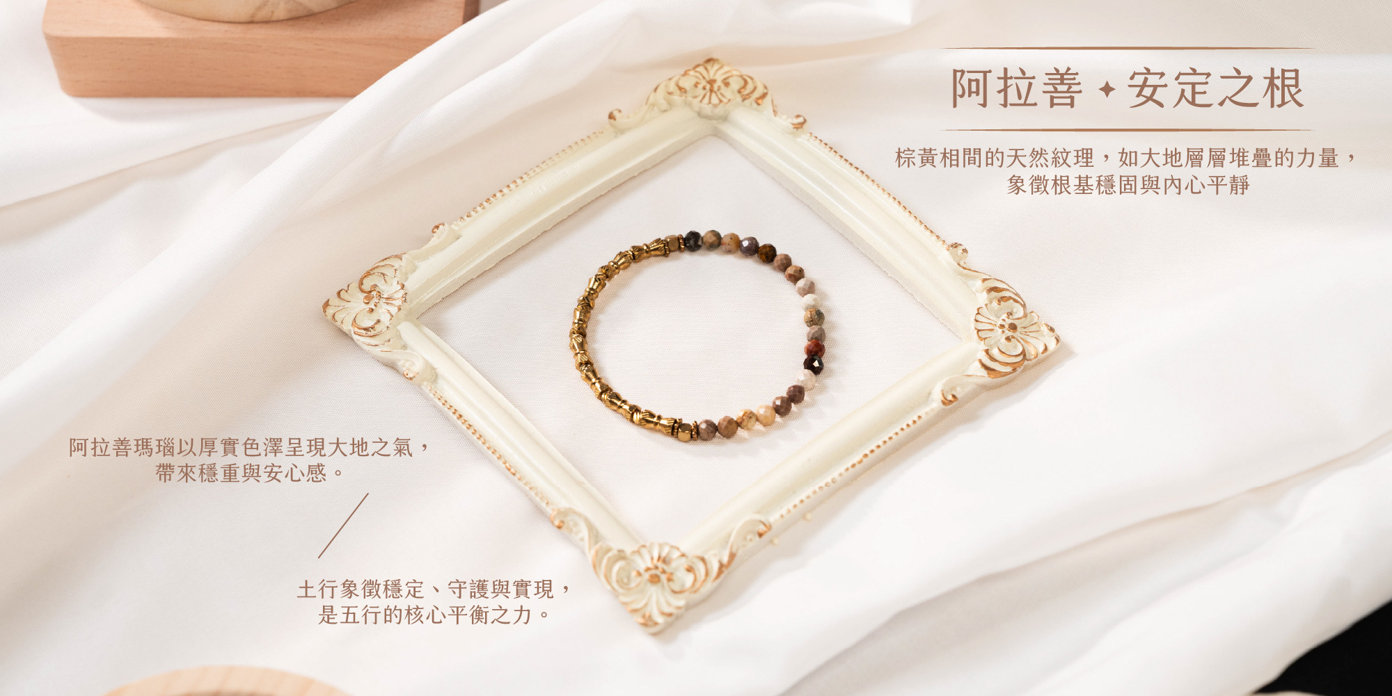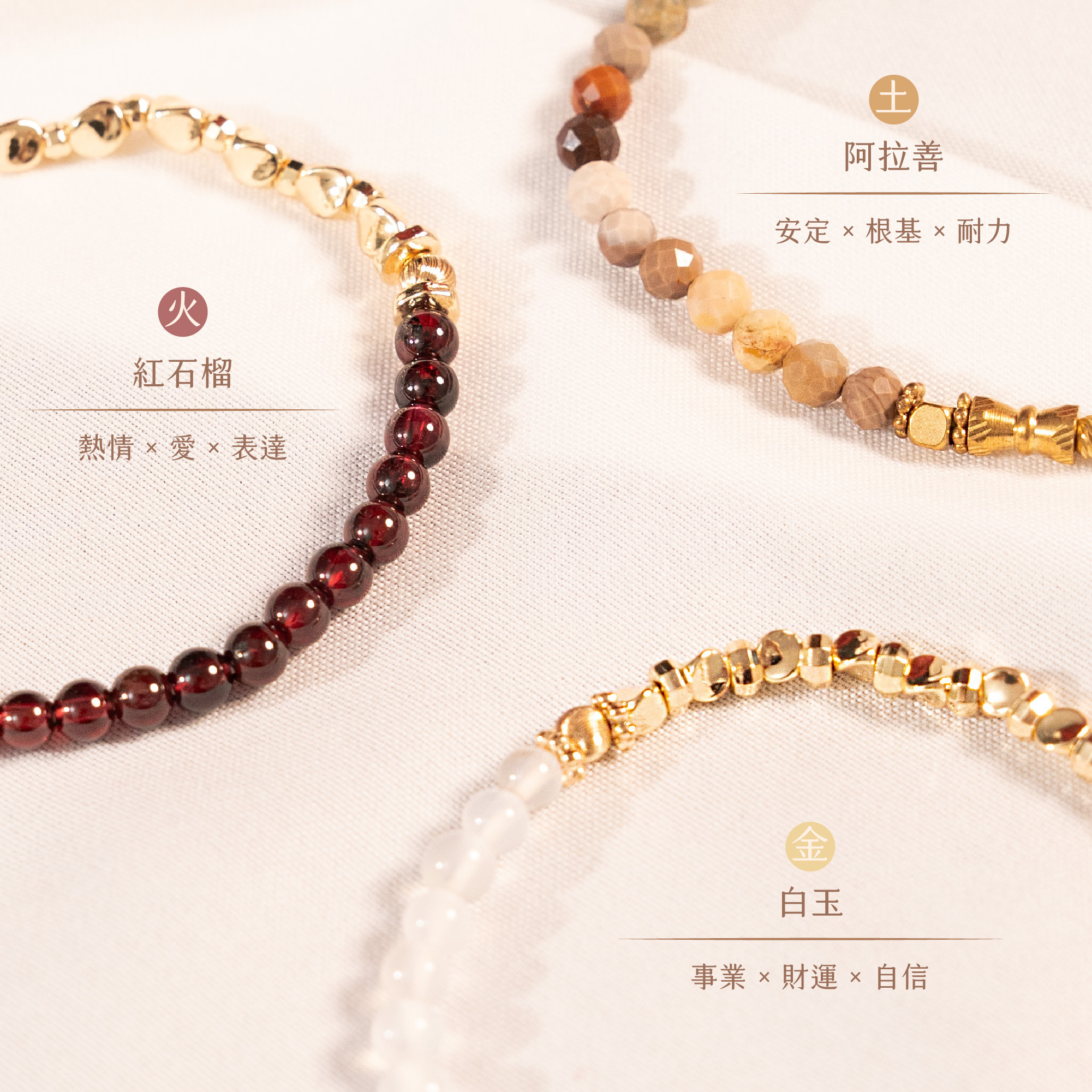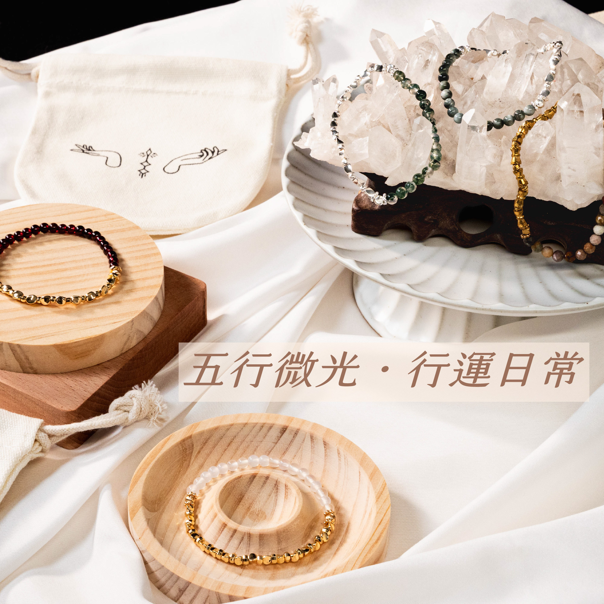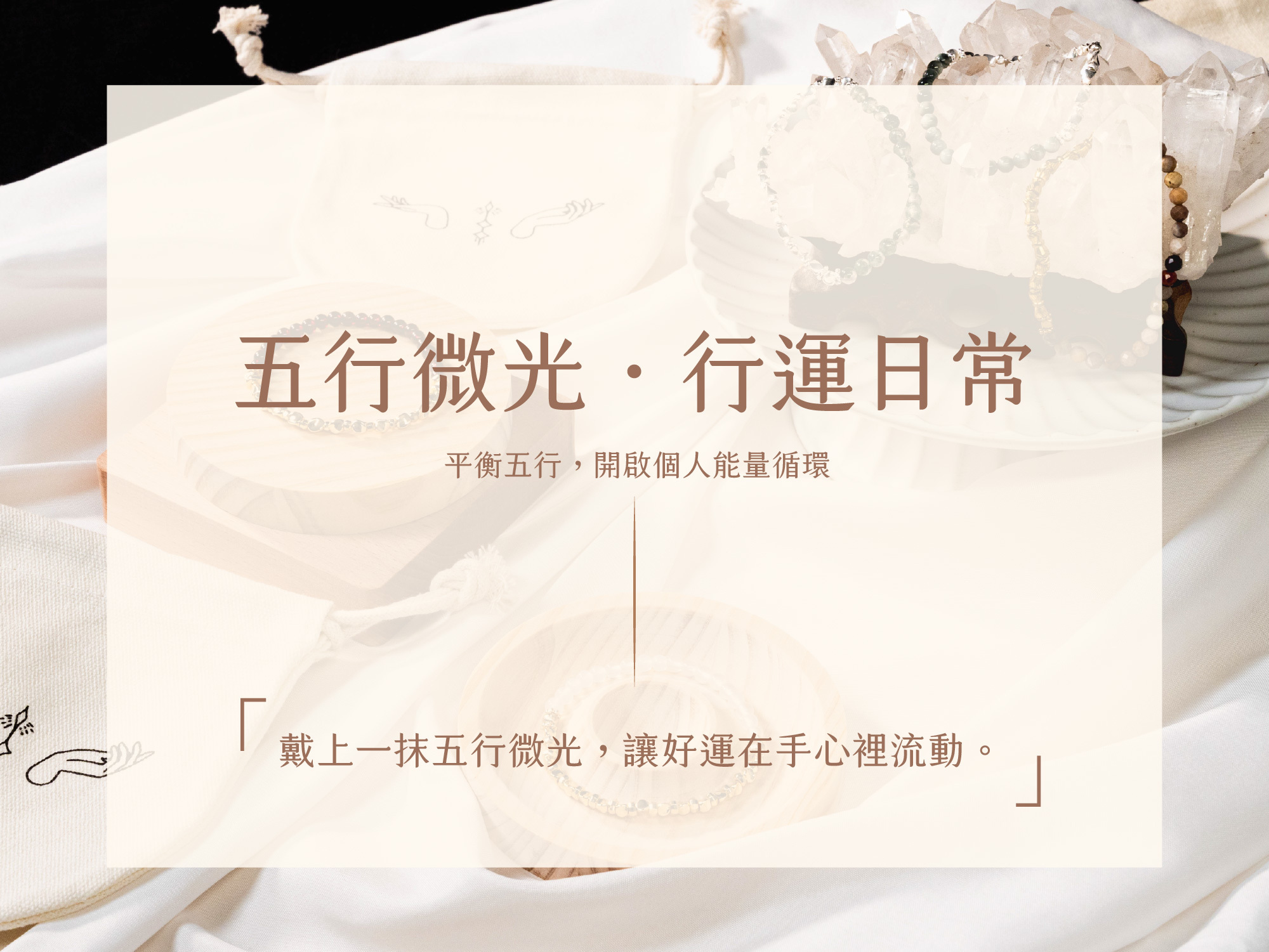 「戴上⼀抹五⾏微光,讓好運在⼿⼼裡流動。」