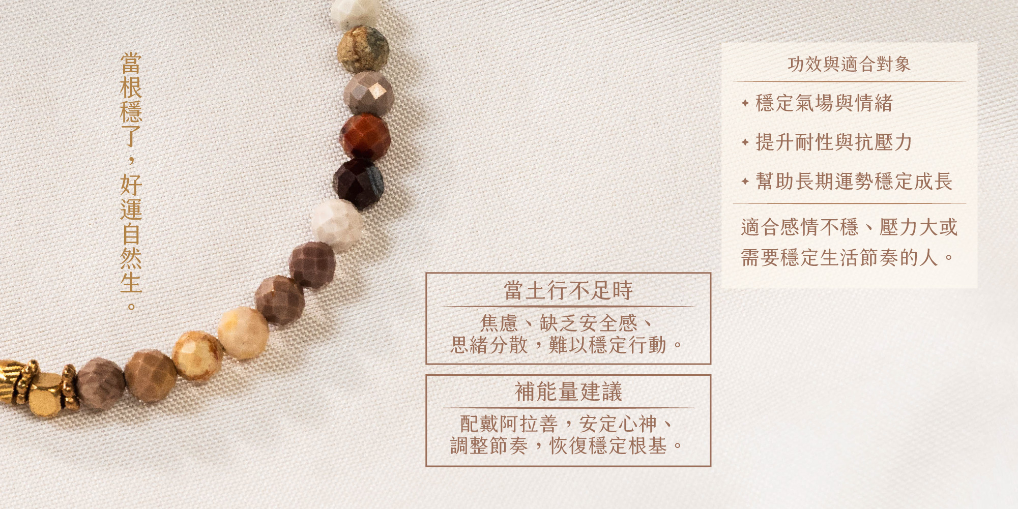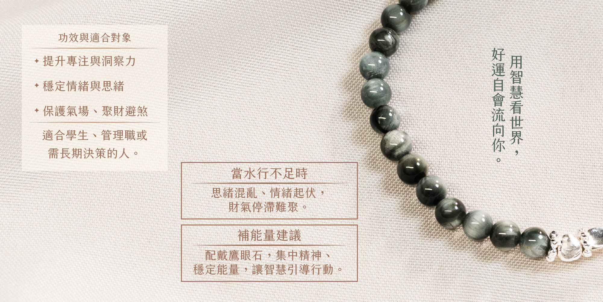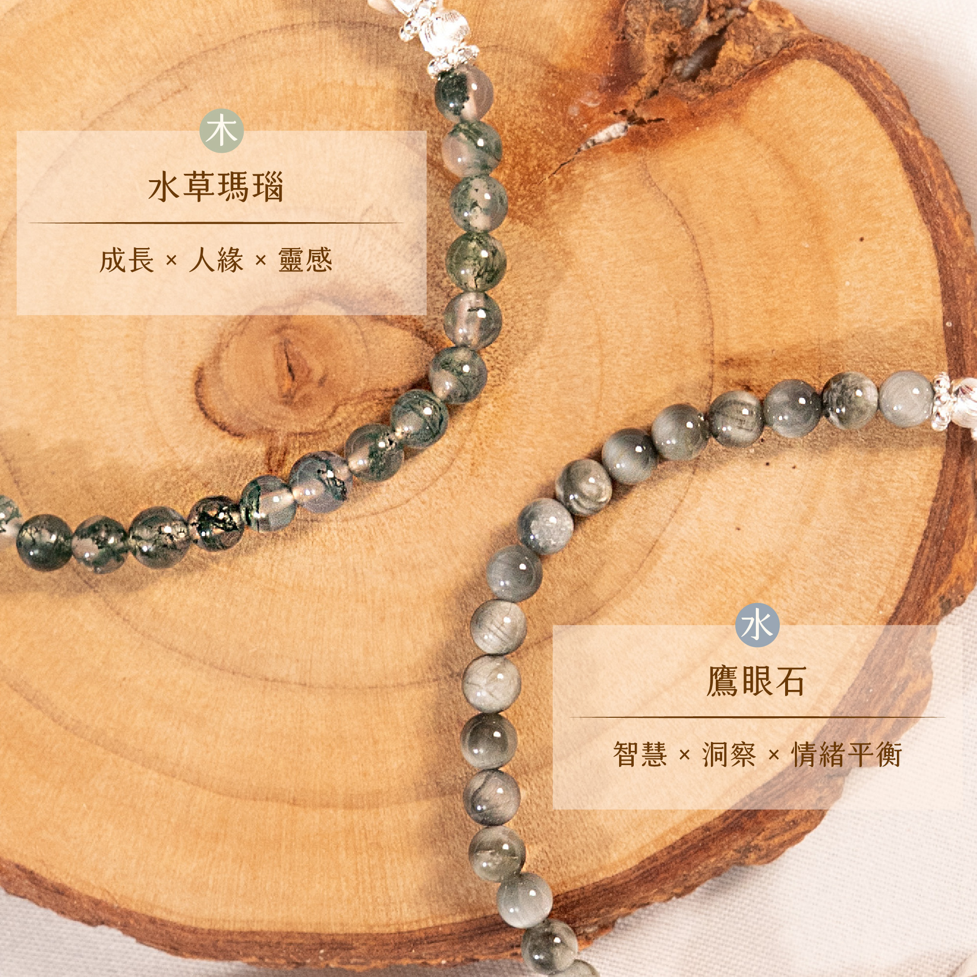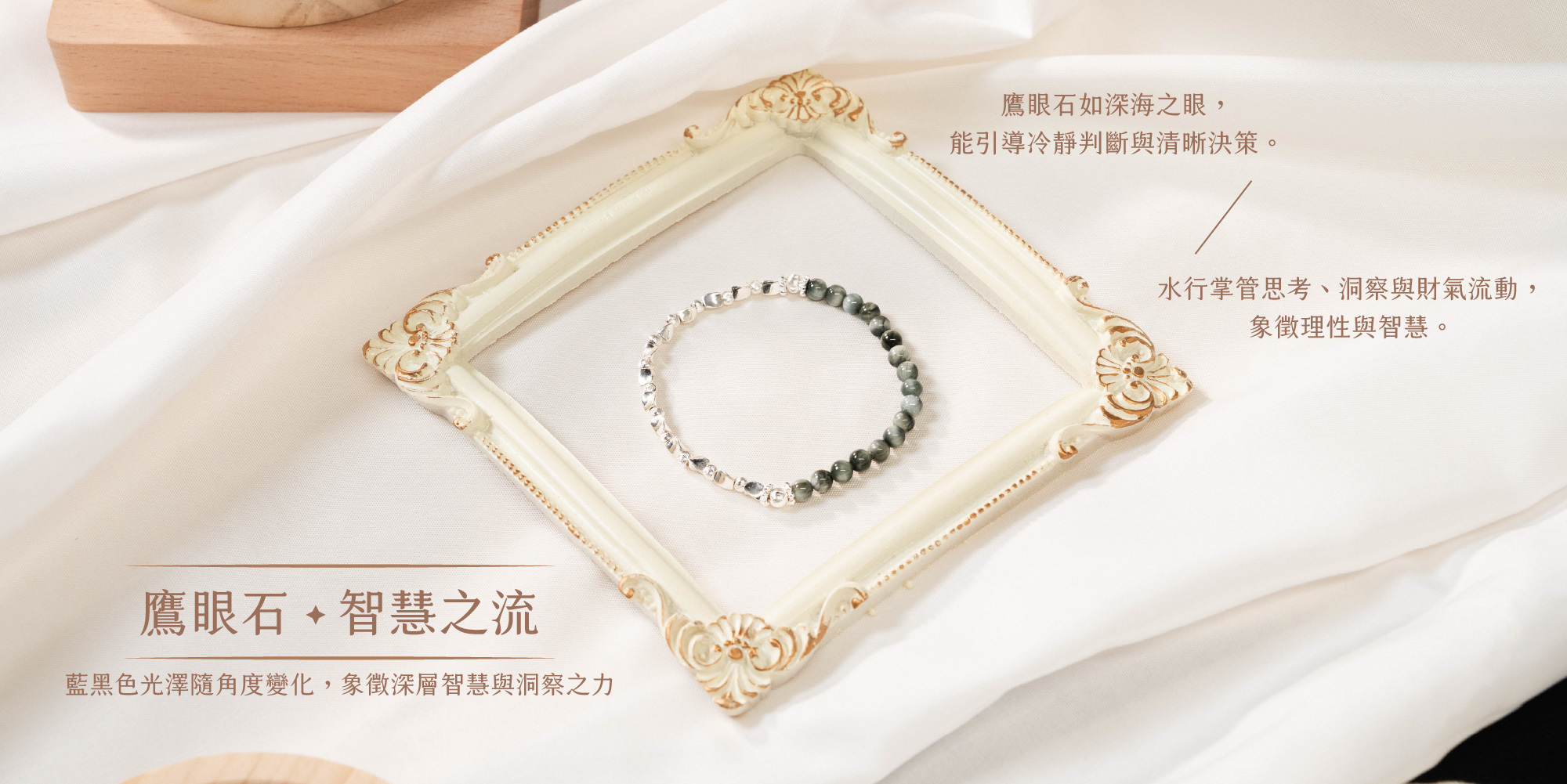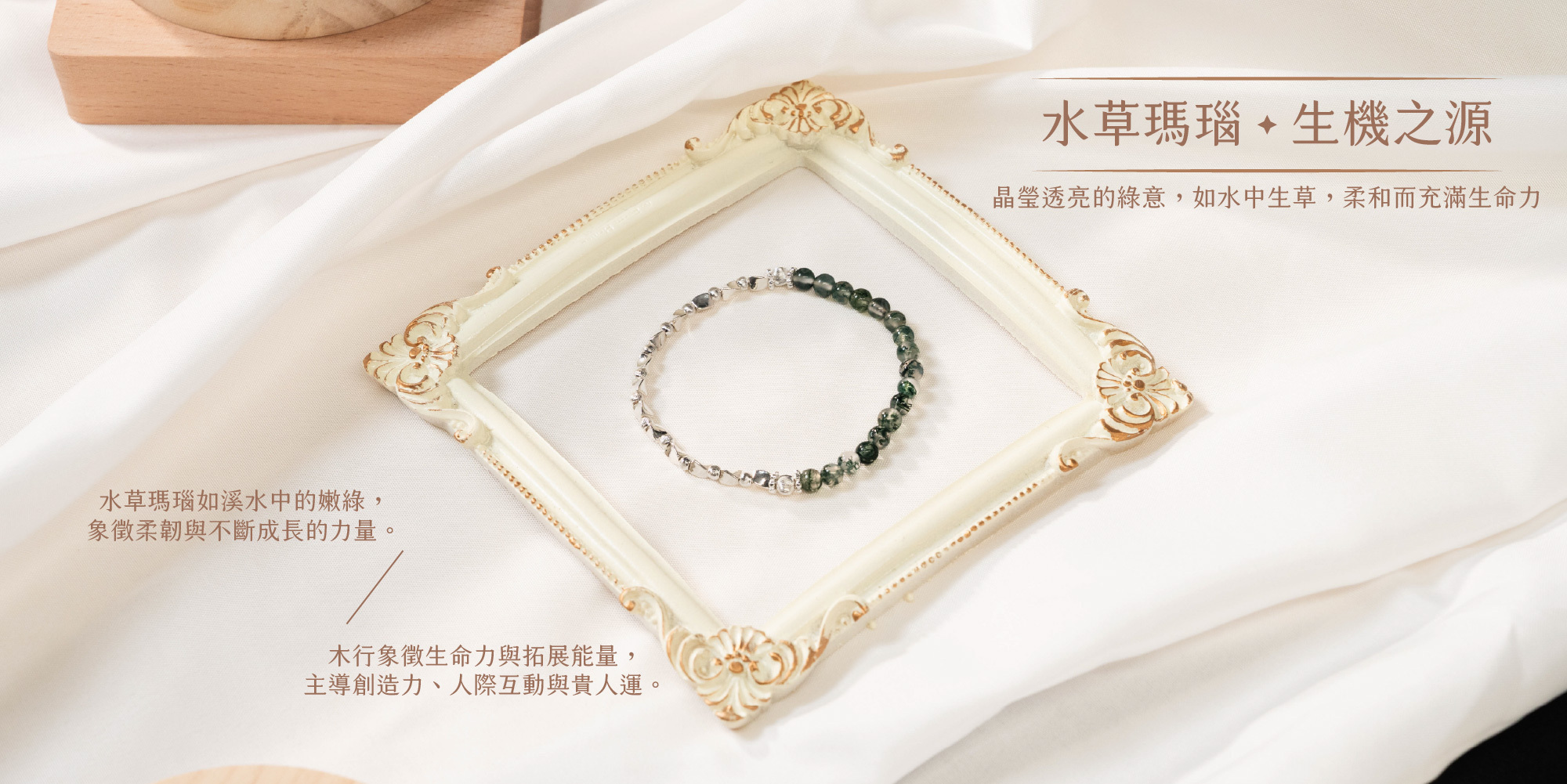 「戴上⼀抹五⾏微光,讓好運在⼿⼼裡流動。」